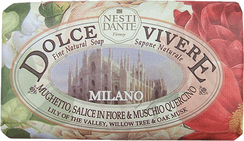 Milan, Italy a city much admired for its fashion and style. The Duomo di Milano, Milan's magnificent Gothic cathedral, is one of the world's largest churches. Its dazzling white front facade, arguably the world's most beautiful, dominates the cathedral square. This stunning soap pays homage to this ancient city, featuring a tender combination of lily of the valley, willow tree and oak musk.