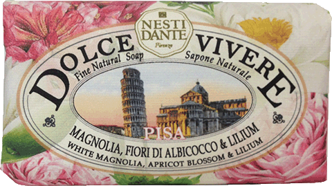 Sensuous, fresh and invigorating, deliciously spontaneous and natural, Pisa soap is imbued with the floral notes of white magnolia, apricot blossom and lilium to create a fusion of light and positive energy.